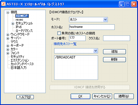 - [接続] パネルを開き、[XDMCP を使用する] をチェックします。